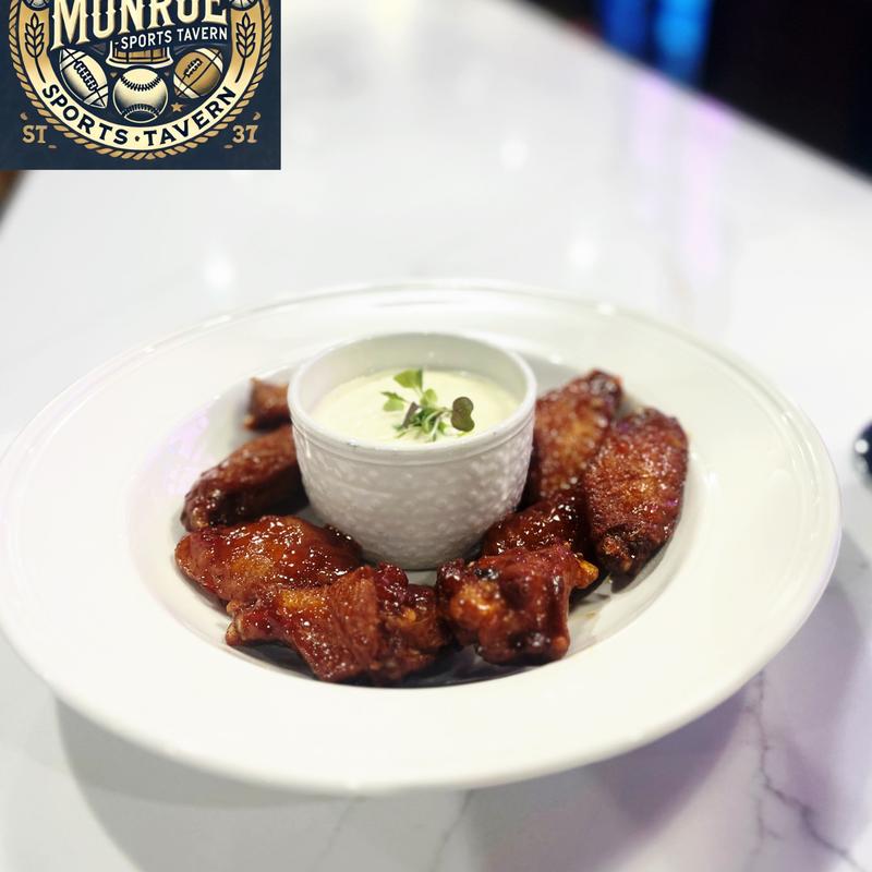 6 WINGS SERVED WITH BLEU CHEESE DRESSING AND SAUCE OF YOUR CHOICE THAI CHILL, BUFFALO, ROASTED GARLIC